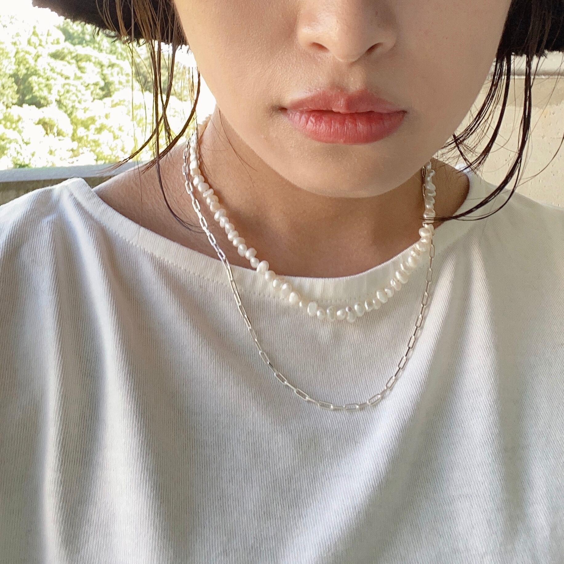 艶のあるホワイトカラーが良い雰囲気を演出する 淡水真珠を使用。